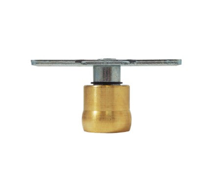 Guía inferior para portones colgantes fabricada en acero con cabezal de bronce de diámetro 35. Se puede fijar al portón o al piso.